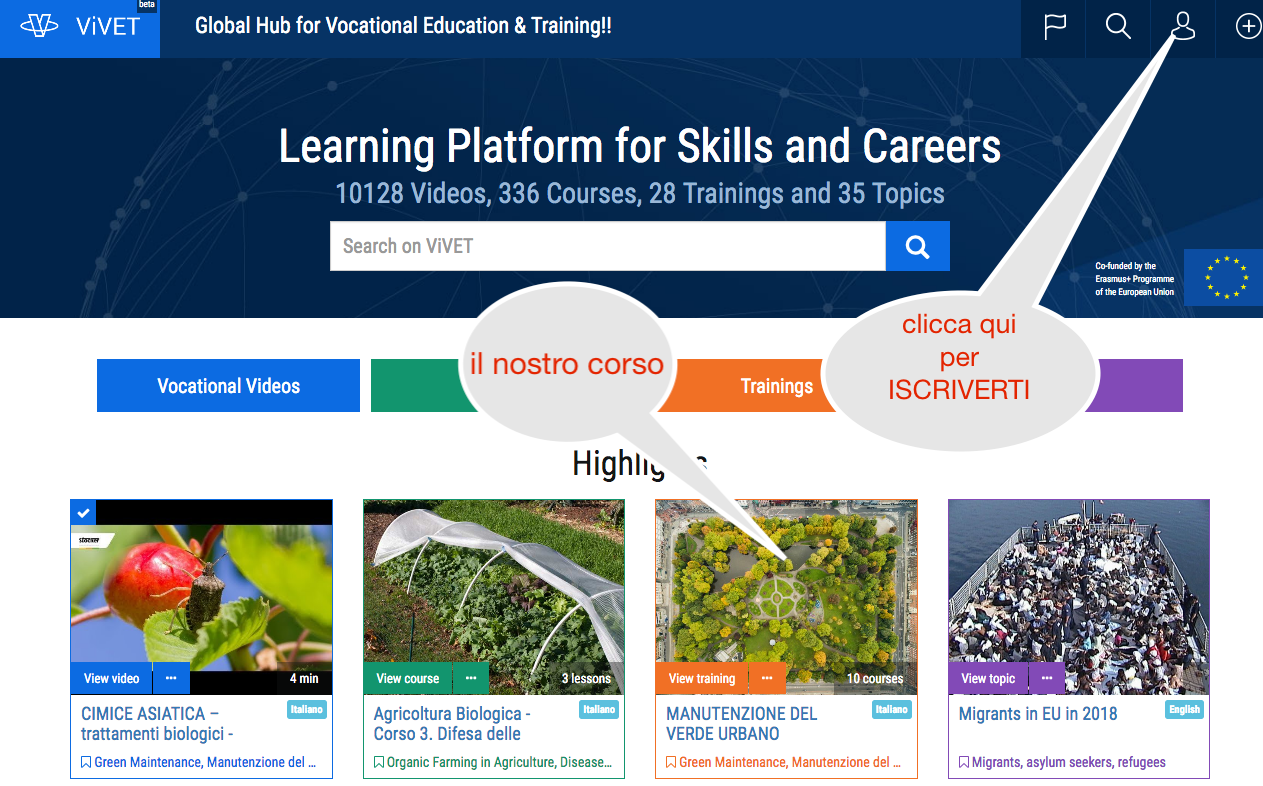 We remind you that many other courses can be used on the vivet.education platform, of which many are in Italian as well as in nine other foreign languages .